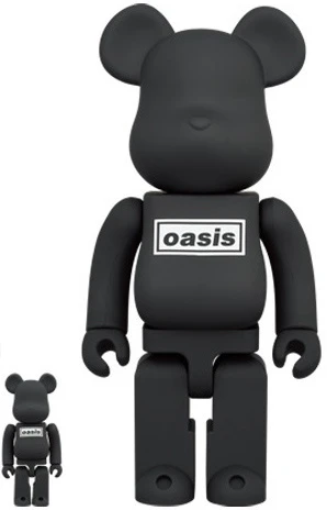 Reminisce about the ’90s with this BE@RBRICK 100% and 400% set featuring the logo of the English rock band Oasis. It also has a black rubber coating. Display it with your music collectibles or other BE@RBRICKs and turn up “Wonderwall” or your favorite song by Oasis. Measures 2.8″ and 11″.
