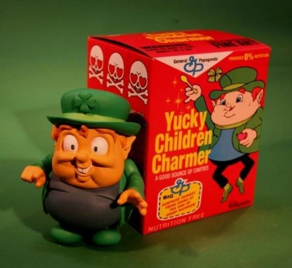 Yucky Children Charmer: Magically Nutritious! Ron English releases his newest Cereal Killer designer vinyl figure: Yucky Children Charmer, the pot belly at the end of every rainbow!