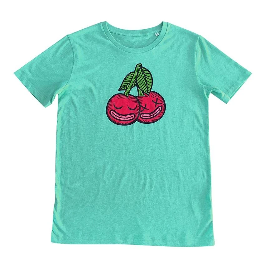 This is the Mid Heather Green edition of the Cherrysh T-shirt, designed by Kloes x Creamlab.