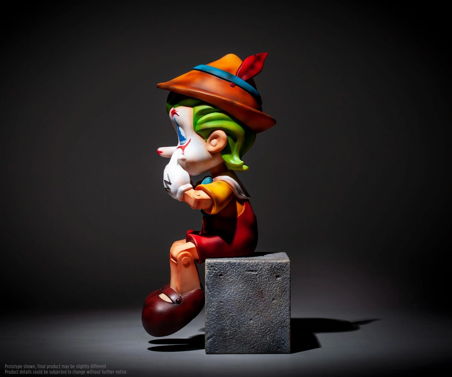 your eyes and picture Joaquin Phoenix laughing like the JOKER, well the guys at Fools Paradise has the last laugh with their PINO // I HAD A BAD DAY! Once again killing us with more mashups and supersize figures! Pinocchio live you’ve never seen him before or is it the JOKER like you’ve never seen him before?
