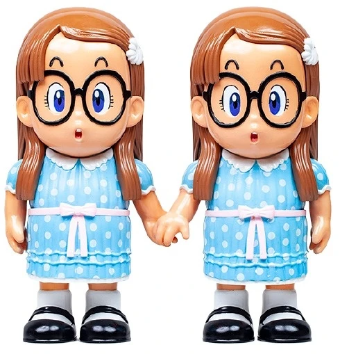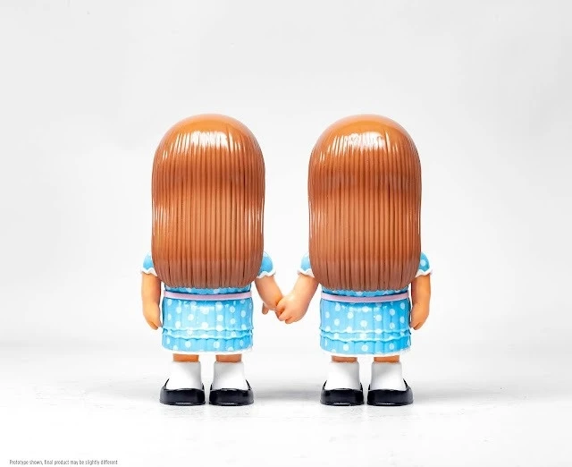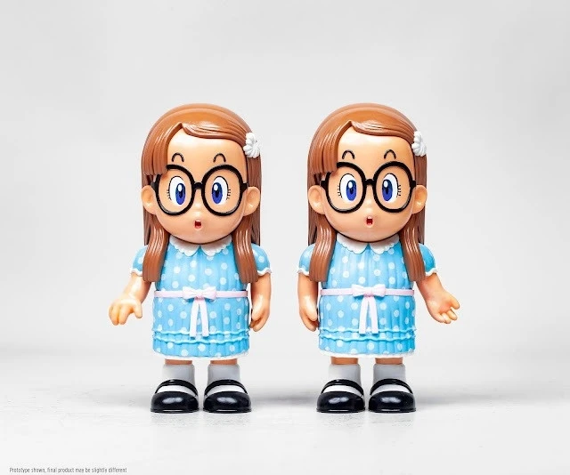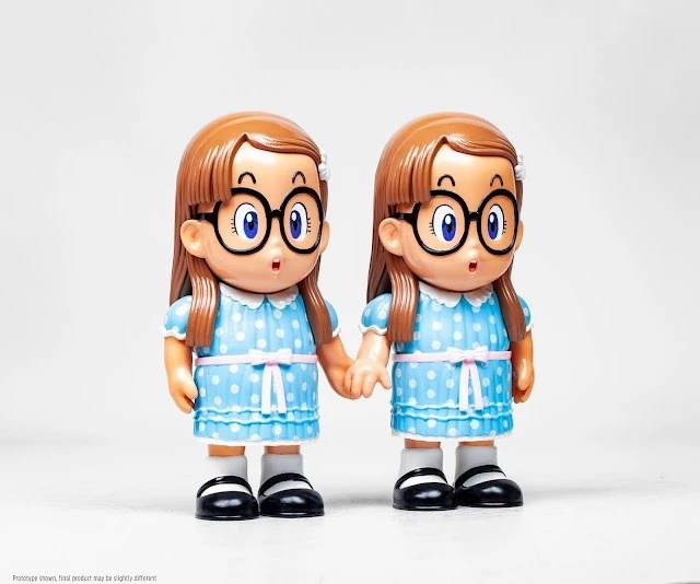 Are you ready for The Shocking? Fools Paradise begins its horror mashup series with the ‘The Shocking Twins’ vinyl art toy set. The set features the immediately recognizable twins from The Shining in their blue and pink dresses. What’s perhaps a little less obvious is that the set also references the near-sighted robotic marvel Aralé Norimaki from Dr. Slump and Dragon Ball fame.