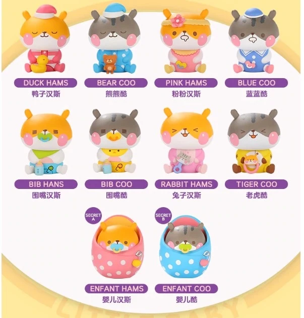 You’re buying a single blindbox (1x) from the Tiger Coco Little Baby Chewy Hams Series produced by Pop Mart from China.