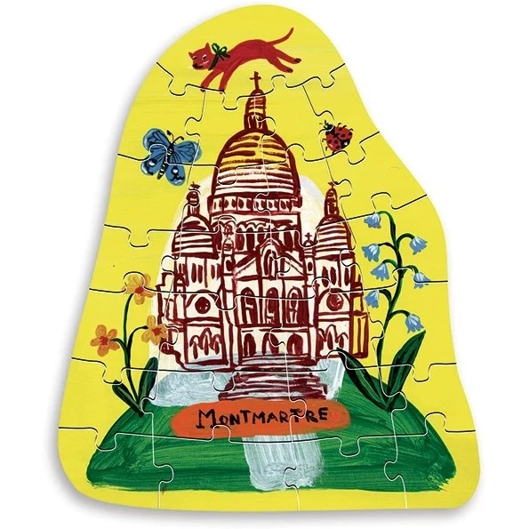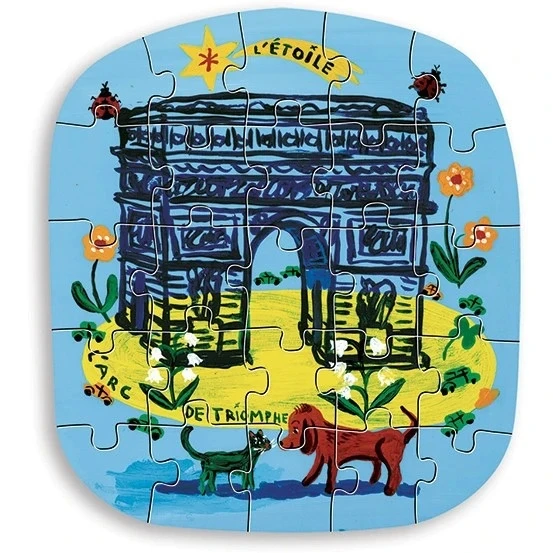 Give your little world traveller this wonderful exciting wooden puzzle set by Vilac. The smart Eiffel tower box and the gorgeous easy to do puzzles inside are all designed artwork by well-known Parisian artist Nathalie Lete.
